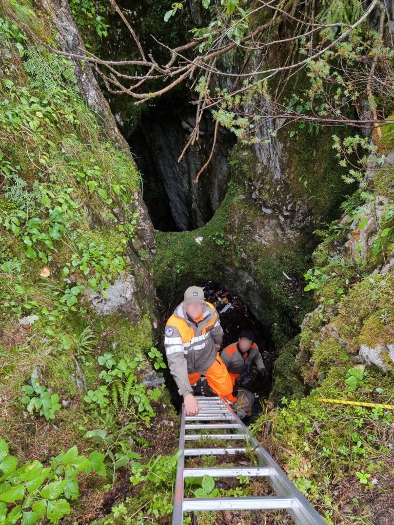 Zustieg in das Hagloch beim Lutersee. Die Zivilschutzorganisation Nidwalden hat für den Müllräumungseinsatz eine Leiter montiert.