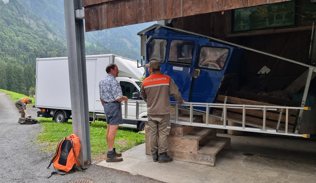 Das Material der Zivilschutzorganisation musste aufwändig mit der Seilbahn und anschliessend mit einem Alpfahrzeug zum Höhleneingang transportiert werden.