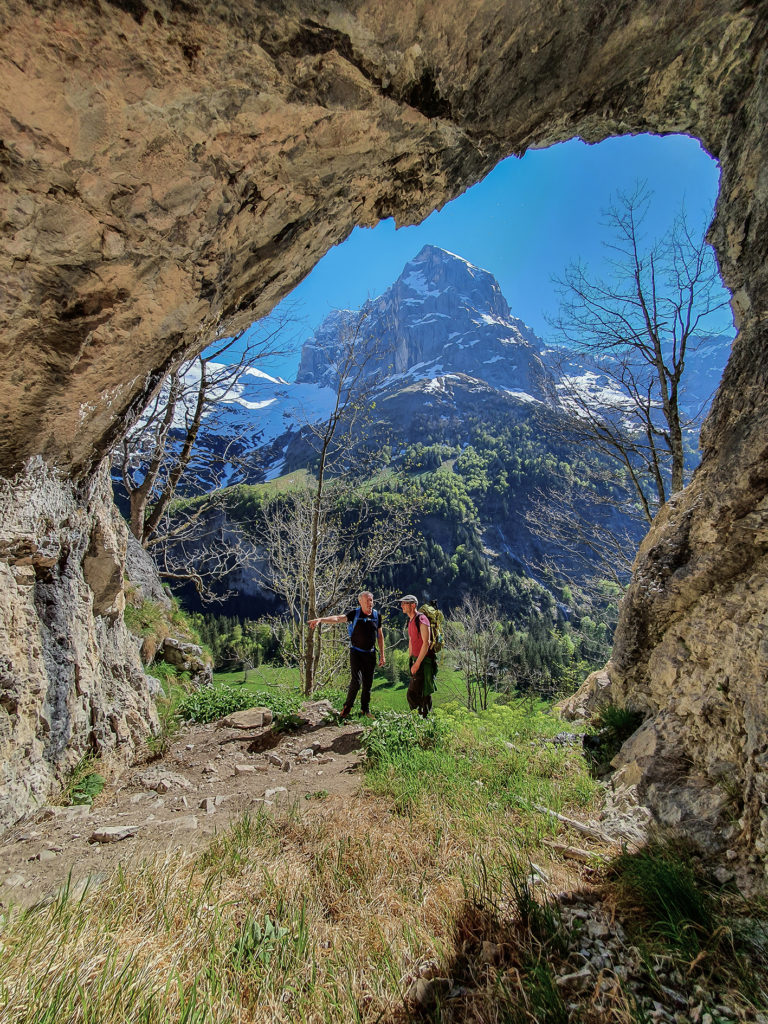 Die imposante Eingangsöffnung zur Brächbalm mit Blick gegen den Titlis.